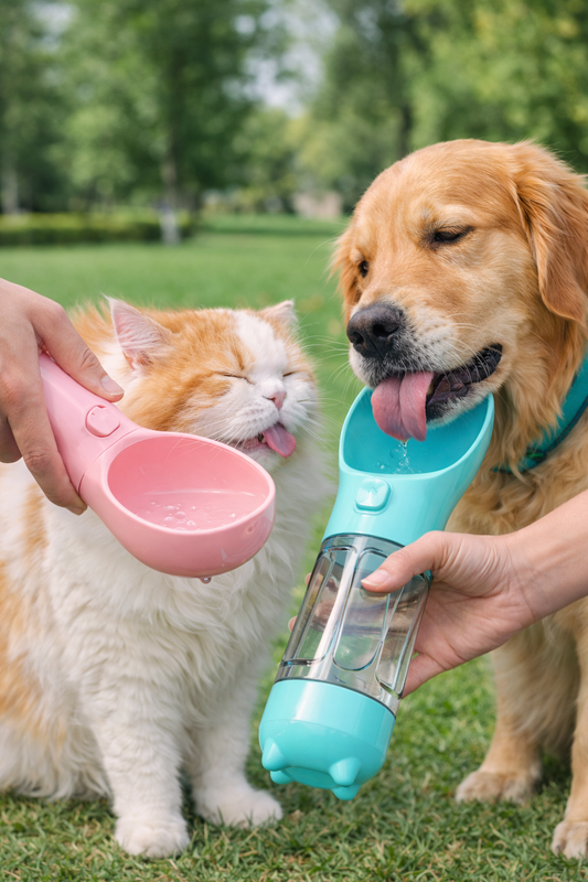 Petnesthub™ 3-in-1 Portable Dog Water Bottle with Foldable Bowl & Waste Bag Dispenser – Leakproof Travel Pet Feeder